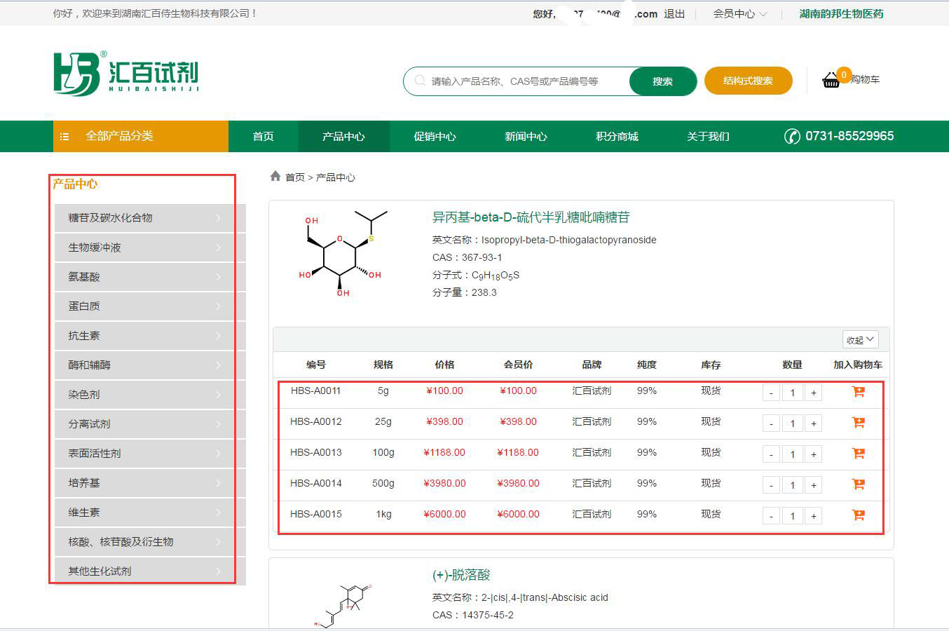 為了方便用戶更快捷的查找產(chǎn)品和及時(shí)了解行業(yè)資訊等內(nèi)容,我們建立了“匯百試劑”官方商城。匯百試劑網(wǎng)站秉承“信譽(yù)為企業(yè)生存之本”的宗旨。在布局上,首頁設(shè)有5大導(dǎo)航板塊,各板塊功能明確、內(nèi)容豐富,方便您快捷獲取想要的產(chǎn)品服務(wù)信息。